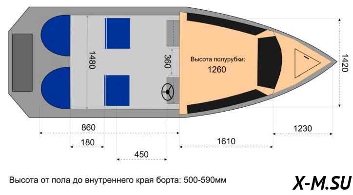 Высота борта на миделе - 930 мм.