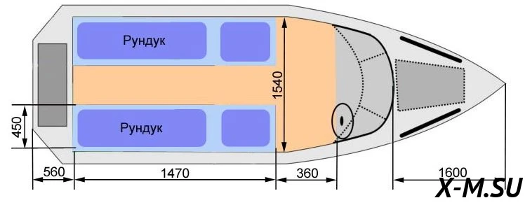 Масса лодки с оборудованием и снабжением (без мотора) - 280 кг.