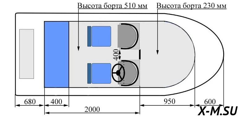 Высота борта на миделе - 600 мм.